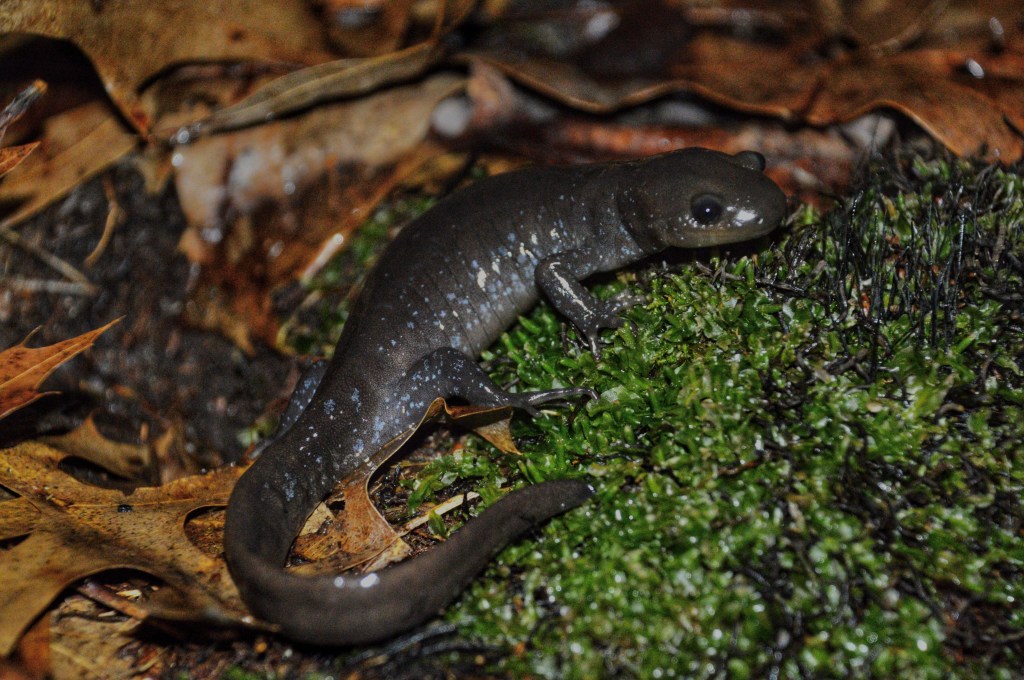 A Jefferson salamander in the spring emergence spotlight.