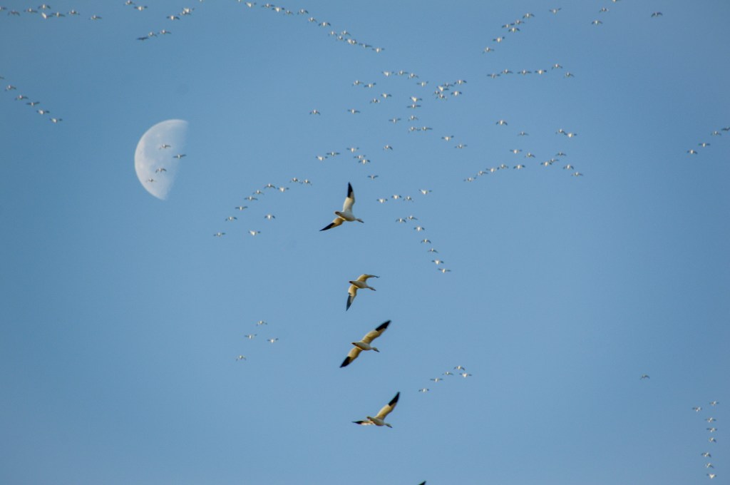 Snow geese visits and a waning gibbous